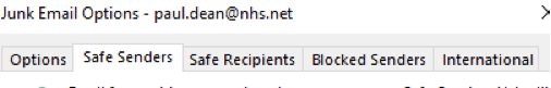 Within the Safe Senders Tab - select Add, enter wuth@cubemail.uk, select OK, select Apply and select OK